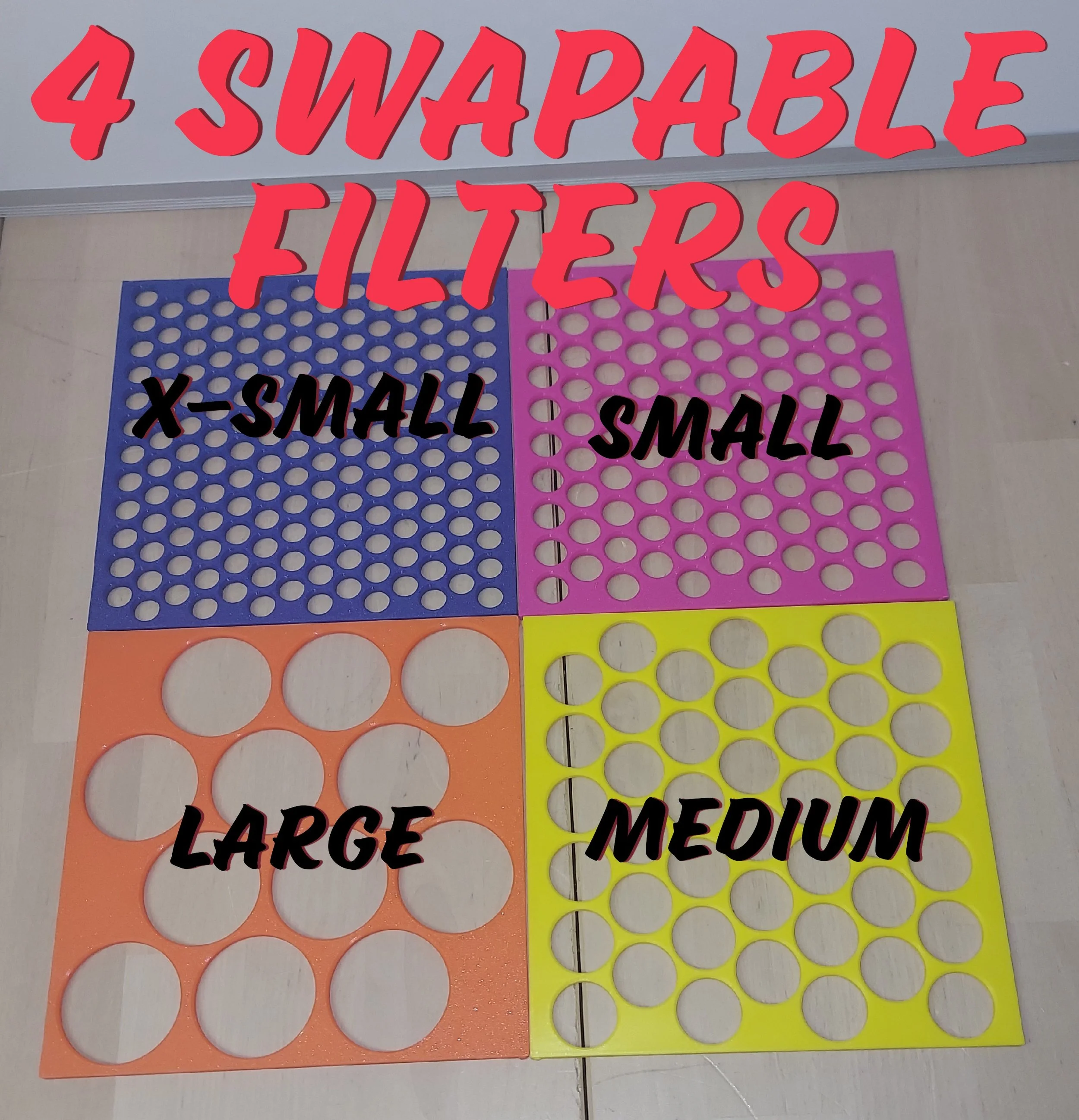 I am a life long Lego fan. I have been selling Lego on eBay for years, and will be opening my BrickLink.com store soon. While organizing my collection I realized that there would be a way to help with the Lego sorting process. This box is that solution. There are other products similar to mine, but none are designed to be agitated easily. They are large and clunky and usually have all the different sorting levels in one device. This box will sort one size/classification at a time and drop the filtered Lego into the box at the bottom using the interchangeable filtering plates. This is a polished version of what I have been using for years to help me sort Lego. I hope you will find it useful as well.